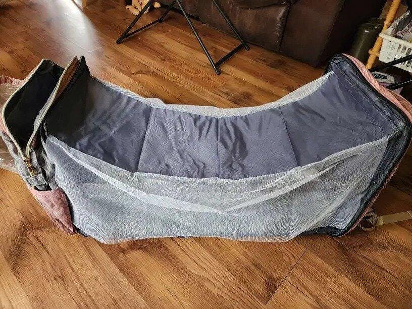 バッグを開くだけで、清潔で安心なベビーチェンジスペースに。